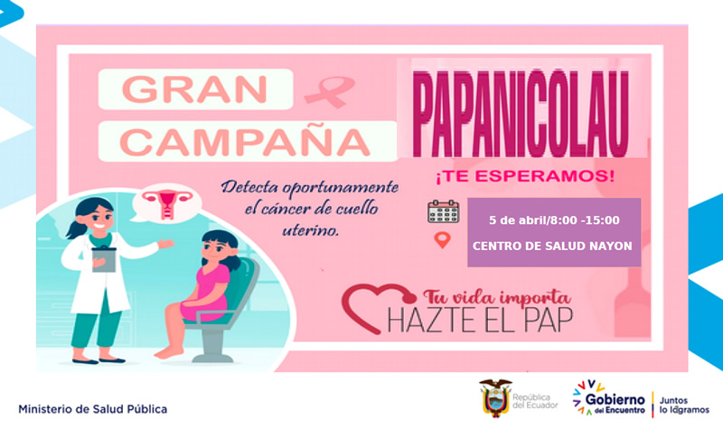 El Ministerio de Salud Pública y el Centro de Salud Nayón invitan a la Gran Campaña de Detección del Cáncer de Cuello Uterino.