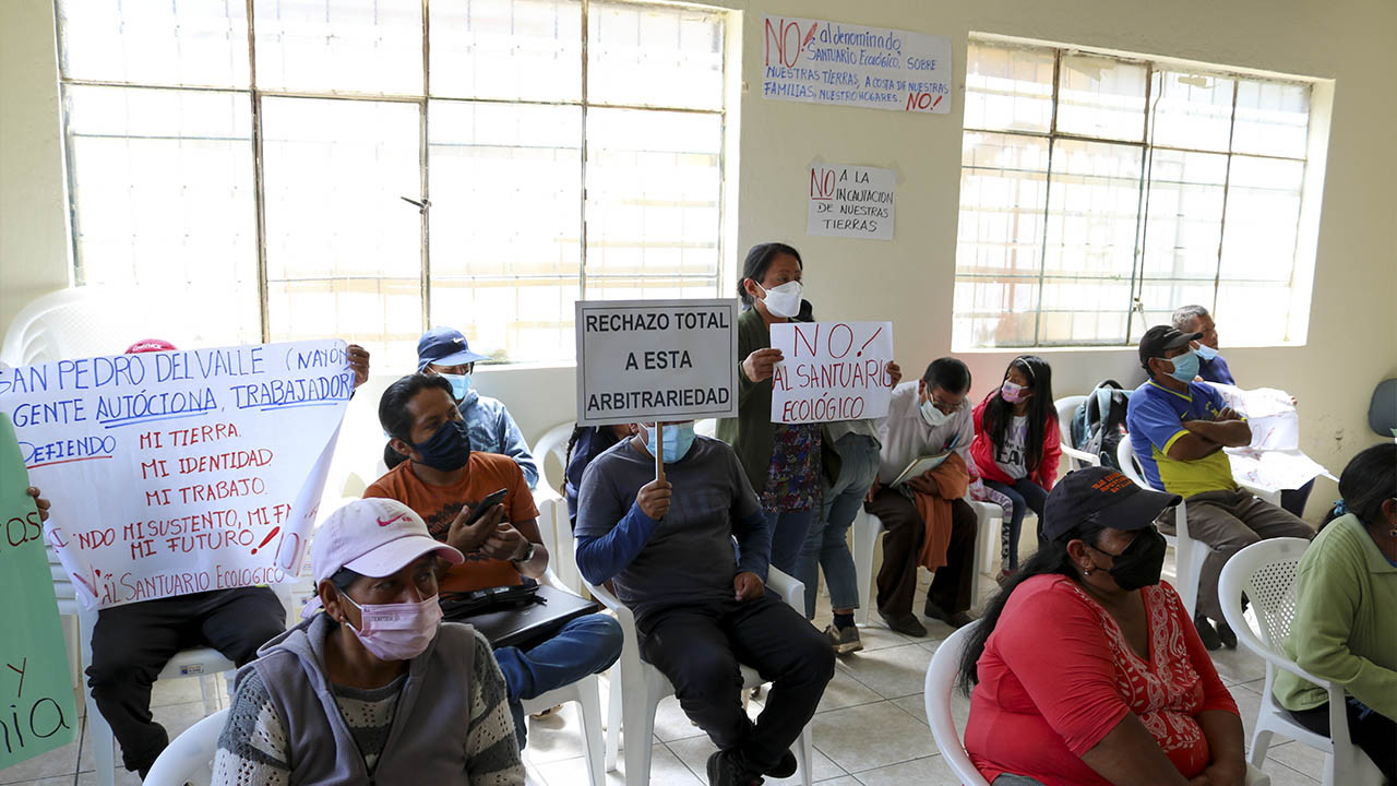 Sin embargo, la actividad de explicación de la propuesta ,por parte de los delegados de la Secretaría de Ambiente del DM de Quito, no se desarrolló debido a que previamente se conoció un video en el que el Concejal Sr. Juan Manuel Carrión habría indicado que un denominado "Grupo de la Comunidad de San Pedro de El Valle" solicitó tal inclusión de territorio al proyecto de santuario y por su parte solicitaba que la declaratoría se lleve a efecto directamente por la Secretaría de Ambiente y la Comisión de Ambiente de la cual él es parte, todo sin consultar a la verdadera comunidad. Asistentes a la reunión procedieron a hacer reclamos y preguntas que las delegadas no supieron responder ni aclarar, además rechazaron la propuesta de Santuario de Vida Silvestre, en tal virtud se retiraron del lugar.