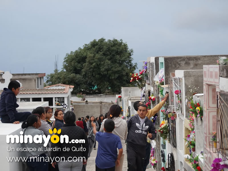 Algunas personas que visitan las tumbas de sus familiares en el cementerio de Nayón ofrendan comida, flores y oraciones a sus difuntos, también se puede encontrar artistas que ofrecen canciones en la memoria de sus seres queridos.